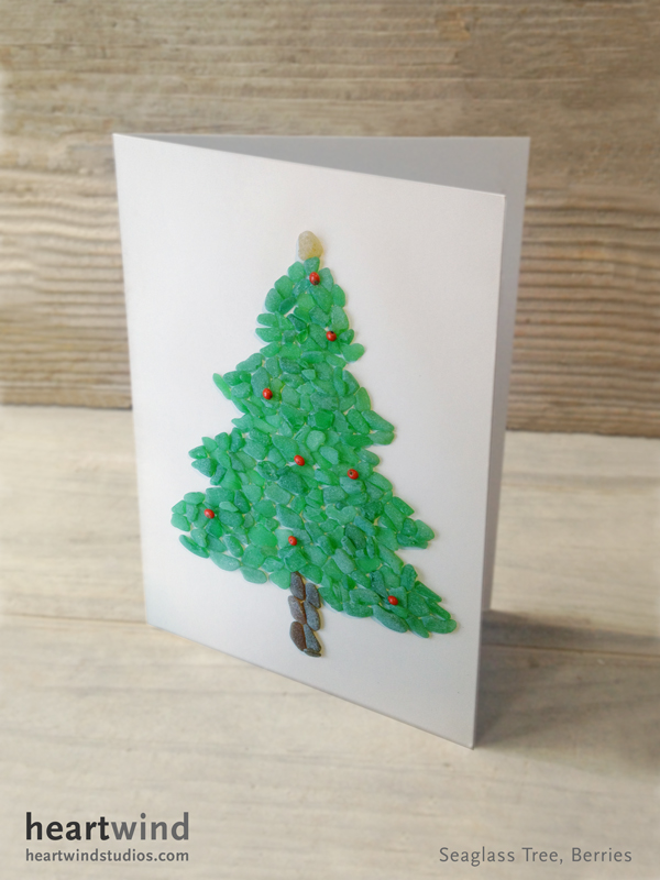 Qty 12 Holiday Cards — Seaglass Tree, Berries