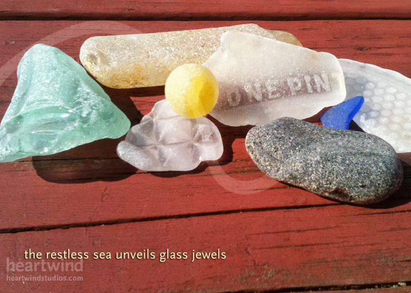 An old legend says that whenever a sailor drowns at sea, mermaids would cry. Their tears are the sea glass that washes up on the beaches of the world. Seaglass is a man-made glass, which has been tumbling in salt water for countless years to produce its frosted appearance and smooth edges. Seaglass always interested me but became an addiction after visiting and finding it on small islands along the coast of Maine. Now a day is often planned around the low tide and the search for ocean treasures. Looking for seaglass is like a form of meditation: enjoying the sun, listening to the waves and having my mind focused on what work of art the sea will give up to my scrutiny.